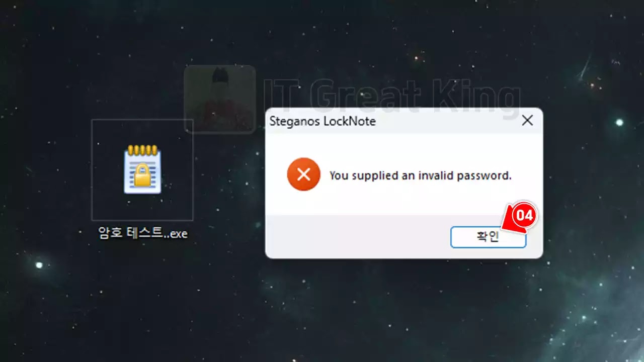 2 암호를 잘못 입력했다면 잘못된 암호를 입력했다는 알림 메세지가 뜨면서 프로그램이 실행되지 않고 종료 됩니다.