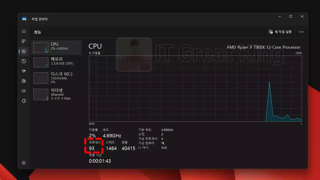 Revi OS 설치가 완료되면 기존에 150개 이상이던 프로세스가 93개로 줄어듭니다. 그만큼 불필요한 프로세스를 제거하여 컴퓨터 리소스를 확보할 수 있으며 쾌적하게 컴퓨터를 사용할 수 있습니다.